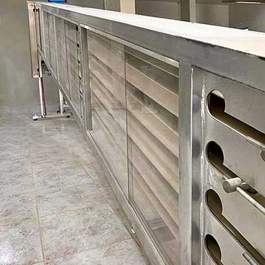 في هذه المرحلة يتم تقطيع العجين وترك قطع العجين ترتاح في المخمر الالي المجهز لها لتكمل طريقها